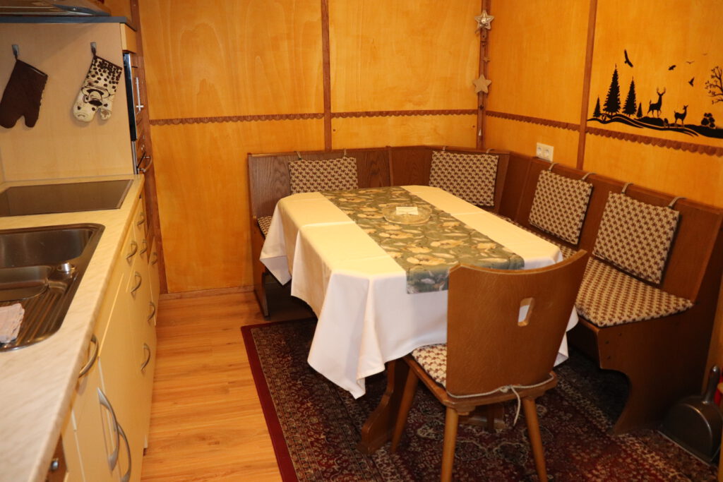 In dieser geräumigen 1-Zimmer-Wohnung im 1. OG haben bis zu 2 Personen Platz. Im Wohnzimmer befinden sich ein Schlafsofa, Fernseher und eine Kochecke mit Tisch und Eckbank. In der Küche steht Ihnen Herd, Backofen, Mikrowelle, Spülmaschine, Kaffeemaschine, Wasserkocher etc. zur Verfügung. Die Wohnung verfügt über 1 Badezimmer jeweils mit Dusche.